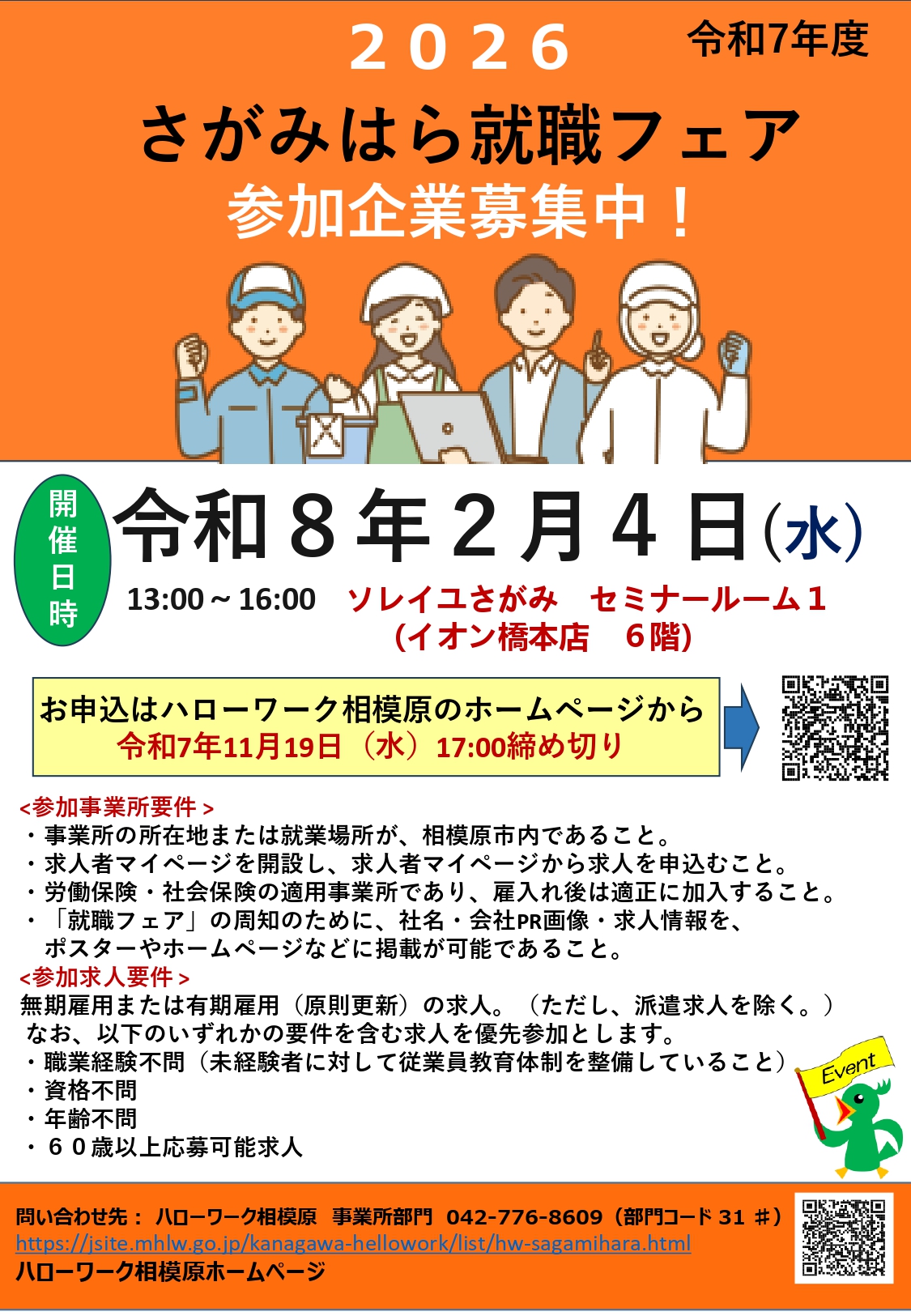 令和7年度「2026さがみはら就職フェア」開催のお知らせ