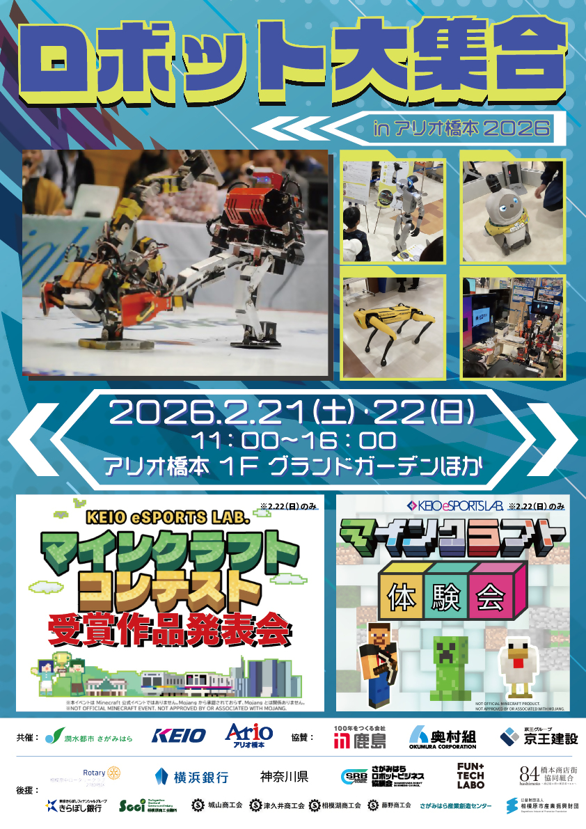 市民の皆様をはじめとした多くの方々に、ロボットとの触れ合いや体験を通じ、よりロボットを身近に感じていただくことを目的として、アリオ橋本にて「ロボット大集合! in アリオ橋本2026」を開催します。